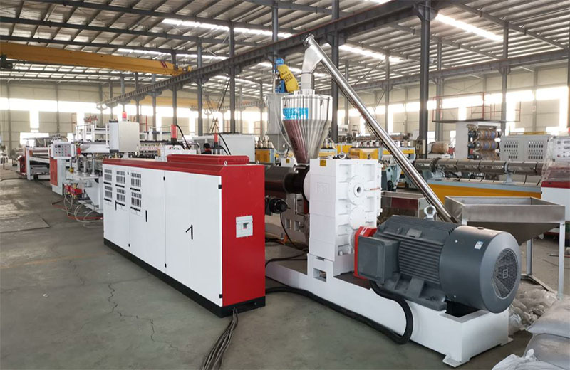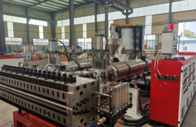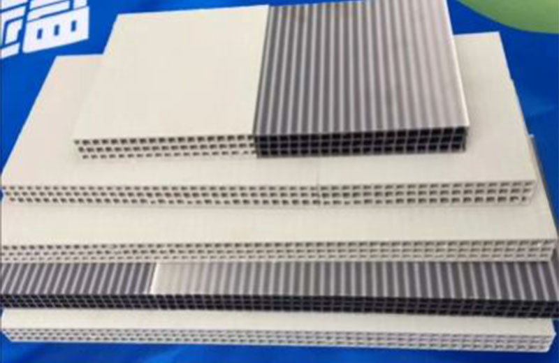 PP 中空建筑模板設(shè)備分為一模單出及一模雙出,并且分為共擠及單出機型,PP中空建筑模板一模雙出生產(chǎn)線是在傳統(tǒng) 915mm 單出生產(chǎn)線的基礎(chǔ)上,經(jīng)過不斷創(chuàng)新,不斷驗證后,推出的全新產(chǎn)品,在滿足大產(chǎn)量,低能耗的同時,提高產(chǎn)品質(zhì)量的穩(wěn)定性。共擠通過三層復(fù)合分配器兩套擠出機共擠,產(chǎn)品上下表面材料可以復(fù)合均勻,復(fù)合厚度可以根據(jù)需要靈活調(diào)整。