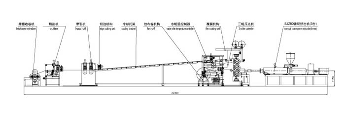 PVC、EVA、PE 防水卷材生產(chǎn)線 主要用于生產(chǎn) PVC地板革類產(chǎn)品和 PVC防水卷材產(chǎn)品。PVC 地板革具有耐磨、耐腐、防滑、防滲、阻燃的性能,廣泛用于機(jī)車、賓館、酒店、娛樂(lè)廳、展館、家庭。PVC 防水卷材可適用于工業(yè)與建筑業(yè)的各種屋面防水,地下室,水庫(kù),堤壩,公路隧道,鐵路隧道,防空洞,糧庫(kù),垃圾廠,廢水處理等建筑防水工程。