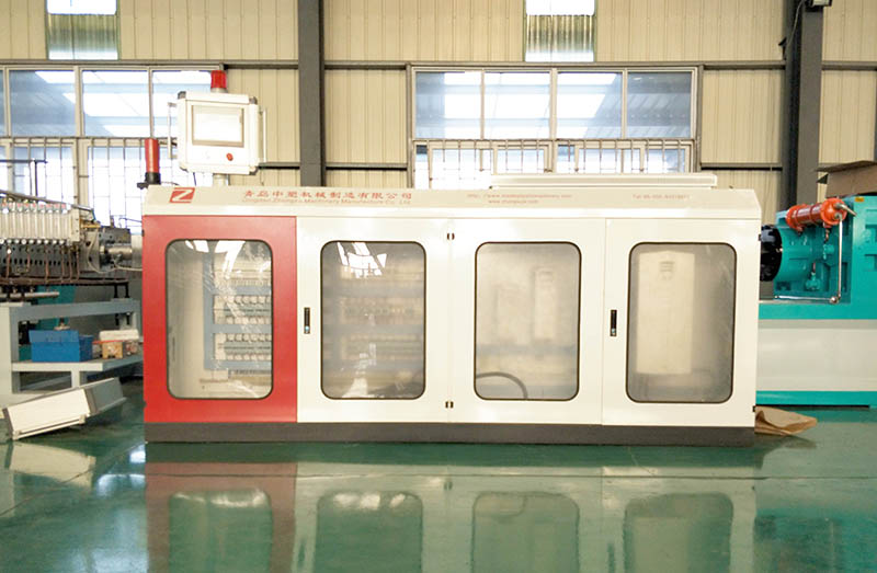 1. 擠出機:螺桿的特殊設計,先進的溫控系統(tǒng), 確保原料的塑化效果良好及高產量穩(wěn)定擠出。