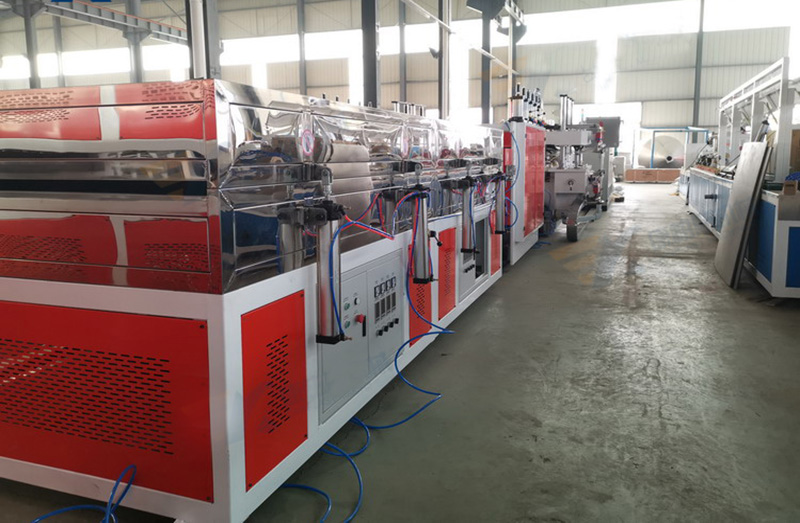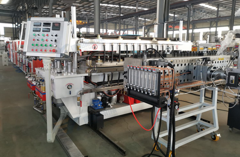 PP中空板擠出設(shè)備又稱為PP格子板擠出設(shè)備,中空格子板擠出設(shè)備,PP包裝箱板設(shè)備等,各地方有各地方的使用習(xí)慣,名稱也不同. PP萬通板所使用的PP萬通板材料決定了它具有無毒、無污染、耐腐蝕、防水、防震的性能。先進的設(shè)計螺桿螺筒,具有添加鈣粉含量比例高,可添加百分之70-75, 混煉非常均勻,特殊定制的模具及冷卻定型板,高耐磨,產(chǎn)量高,冷卻速度快,根據(jù)高鈣的冷卻速度性能,配備有串水功能的冷卻系統(tǒng),提高冷卻速度.